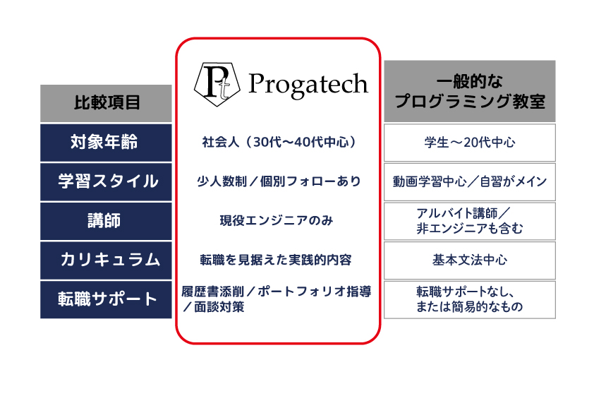 私たちの教室は、30代〜40代の社会人・転職希望者が中心。